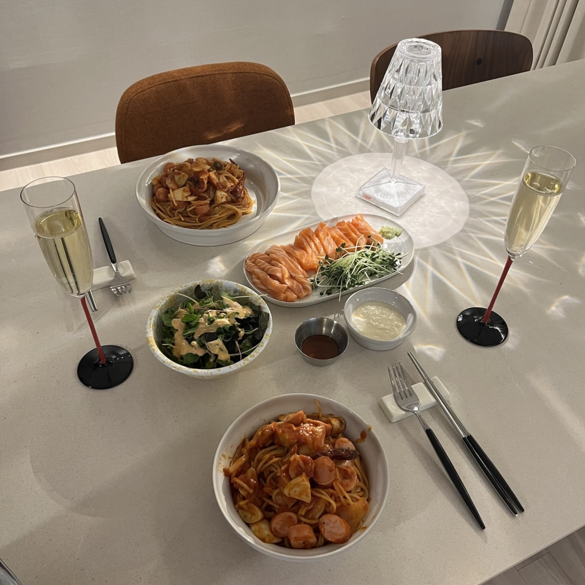 쿠로미 크림스파게티 & 자색고구마샐러드